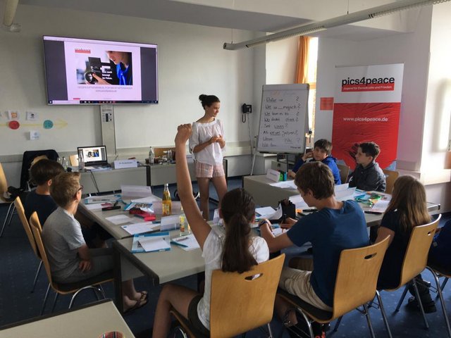 Today it goes on. Anna shows the young artists how to edit their photos afterwards. We are looking forward to the final results and hope that some will also submit the photo they have created to the online competition of pics4peace.