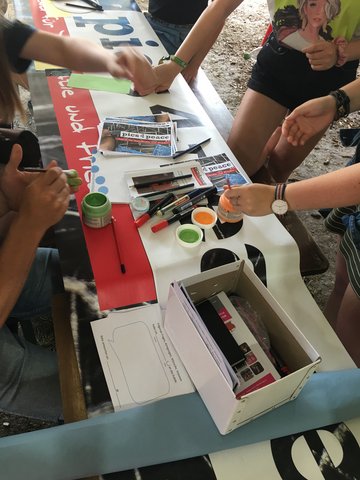 Both the Exhibition pittura oscura, almost 2 meters high pictures, which were created by University students of the Faculty of Design after a workshop with the Berlin Artist Winfried Muthesius, and the workshop with Anna, which the U&D and we conducted in cooperation with the Stadtjugendring, but also the project ""Social Media 0.1" ensured an exciting exchange with the festival guests.
