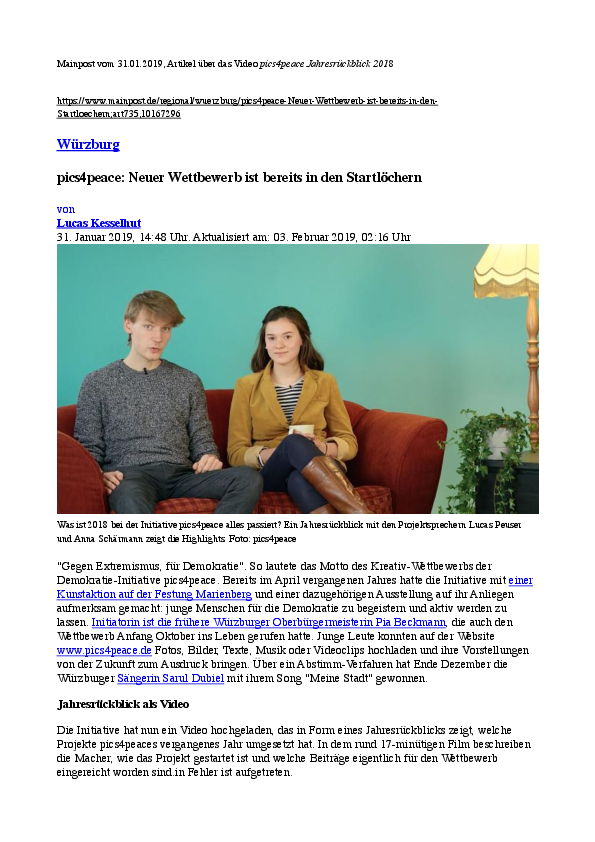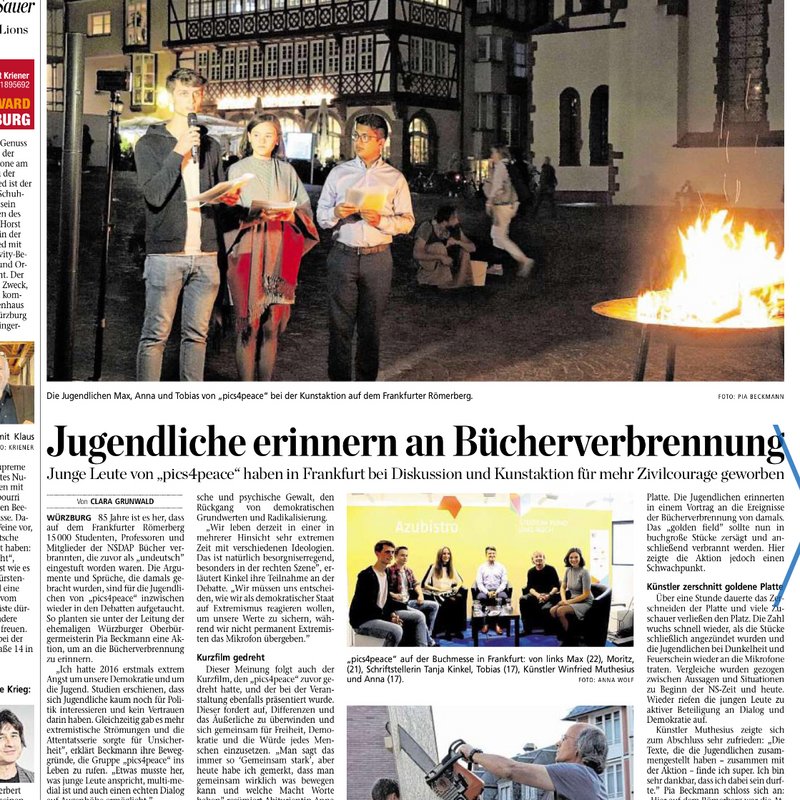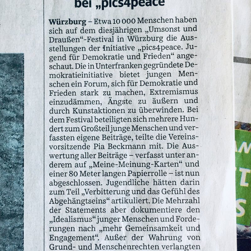 Here you will find a selection of articles, links to TV or radio reports about pics4peace or in context with our cause.