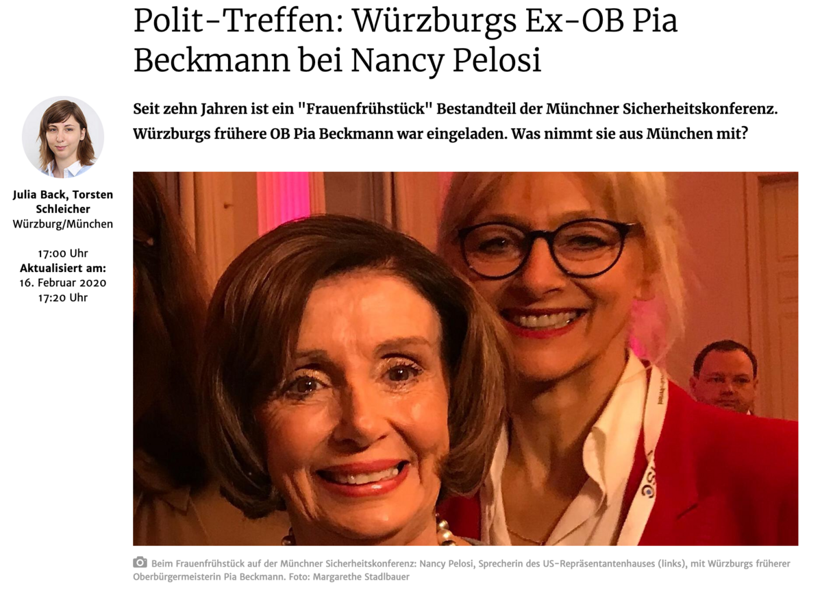 Wo? In München im Rahmen der Sicherheitskonferenz 2020. Beim Women’s Breakfast mit Nancy Pelosi und unserer Vorsitzenden. Im Interview mit der Mainpost seht ihr das Wesentliche zusammengefasst: