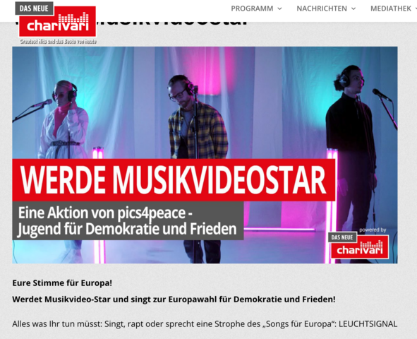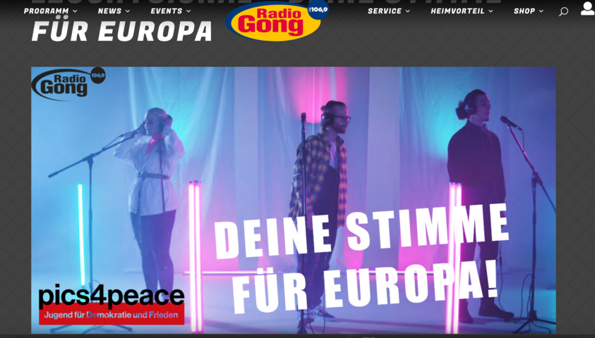 Frank Beyhl, Radio Gong, und Matze Bielek, Radio Charivari, zögerten nicht, als sie von der pics4peace-Aktion mit dem #leuchtsignal-Song zur Europawahl hörten, uns zu unterstützen. Großartig! Ein herzliches Dankeschön dafür auch an alle beteiligten Redakteure und Techniker! Wir wissen uns im gemeinsamen Anliegen für ein friedliches Europa, gegen Extremismus und gegen die Einschränkung der Meinungsfreiheit oder anderer demokratischer Grundrechte, vereint.