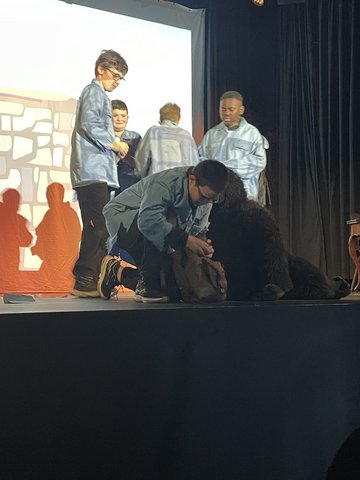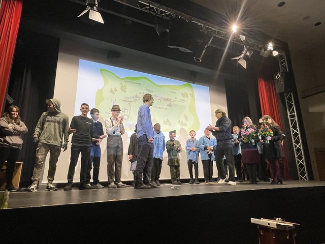 Auch der Tag der Uraufführung war endlich da. Große Aufregung herrschte im Vorfeld. Zunächst wurde das Stück der Schulfamilie in der Aula der Schule präsentiert. Tosender Applaus!