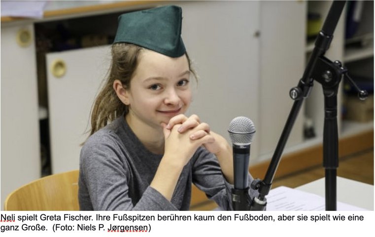Noch größer wird sie, bedenkt man, dass die Kinder nicht nur auf der Bühne stehen, sondern das Drehbuch selbst mitgeschrieben haben. Die Namensgeberin der Schule, Greta Fischer, spielt eine Rolle, flüchtende Kinder und der Zweite Weltkrieg. Große Themen für kleine Köpfe.