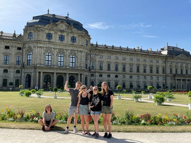 Vor dem offiziellen Ende des Austausch-Programms stand noch ein Tag in Würzburg an. Denn Würzburg hat einem Amerikaner zu verdanken, dass es heute Weltkulturerbestadt ist. Der amerikanische Offizier und Kunsthistoriker John D. Skilton, der als Sieger nach dem Zweiten Weltkrieg zum damaligen deutschen Feind kam, hat sofort das vom Einsturz bedrohte Dach der Residenz sichern lassen. Er erkannte den Wert des einmaligen Kulturguts. Hätte er - wie viele andere Siegermächte - anders gehandelt, das größte freischwebende Deckengewölbe Europas, dessen Deckenfresco von Giovanni Battista Tiepolo von unschätzbarem Wert ist, wäre eingestürzt und zerstört gewesen. So hat die monumentale Architektur Balthasar Neumanns, der im 18. Jahrhundert die Residenz, das Schloss in der Stadt, erbaute, überlebt. Und Würzburg bekam 1981 für dieses außergewöhnliche barocke Gesamtkunstwerk von der UNESCO den Welterbe-Status verliehen. John D. Skilton sei Dank!